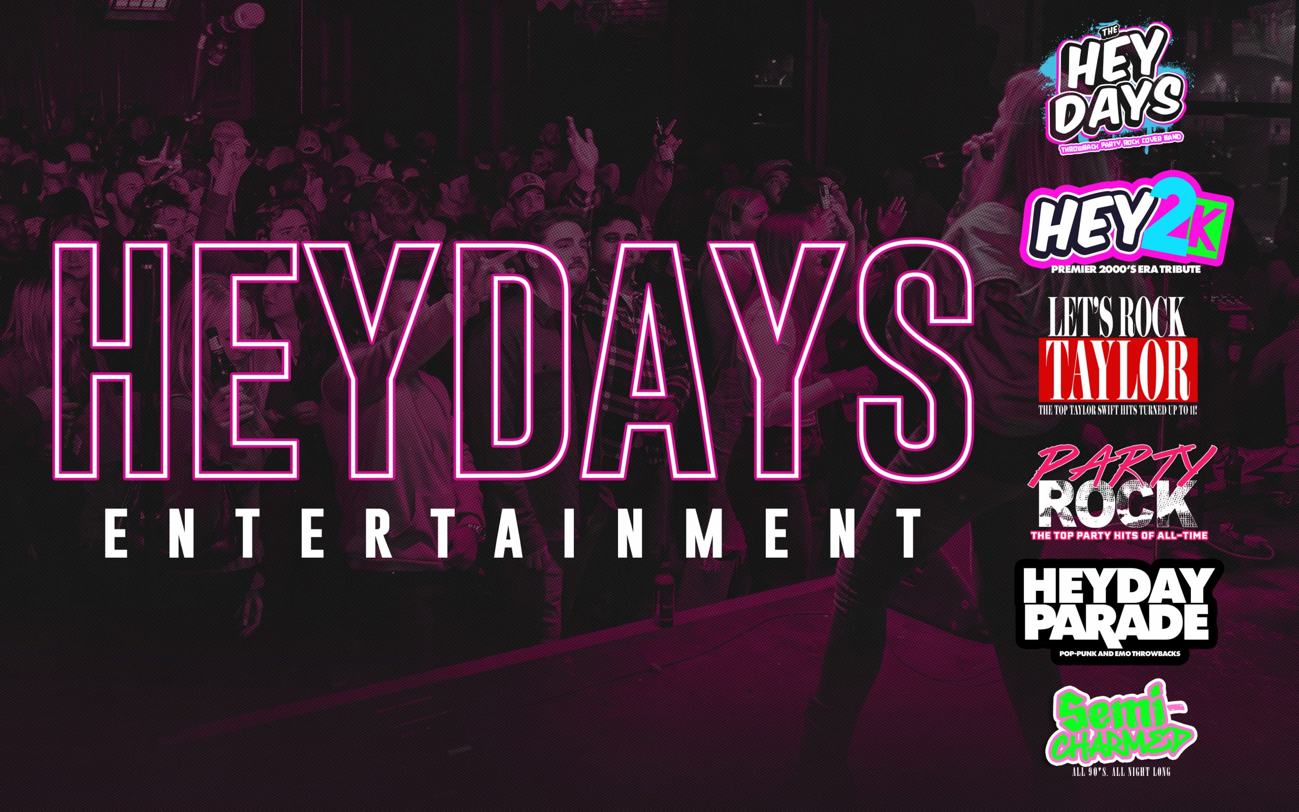 What Act or Theme Are You Interested In? THE HEYDAYSHEY2K - 2000's TributePARTY ROCK EXPERIENCESEMI-CHARMED - 90's TributeHEYDAY PARADE - Pop-Punk TributeLET'S ROCK TAYLORWHAT'S MY AGE AGAIN? - Theme NightOTHER