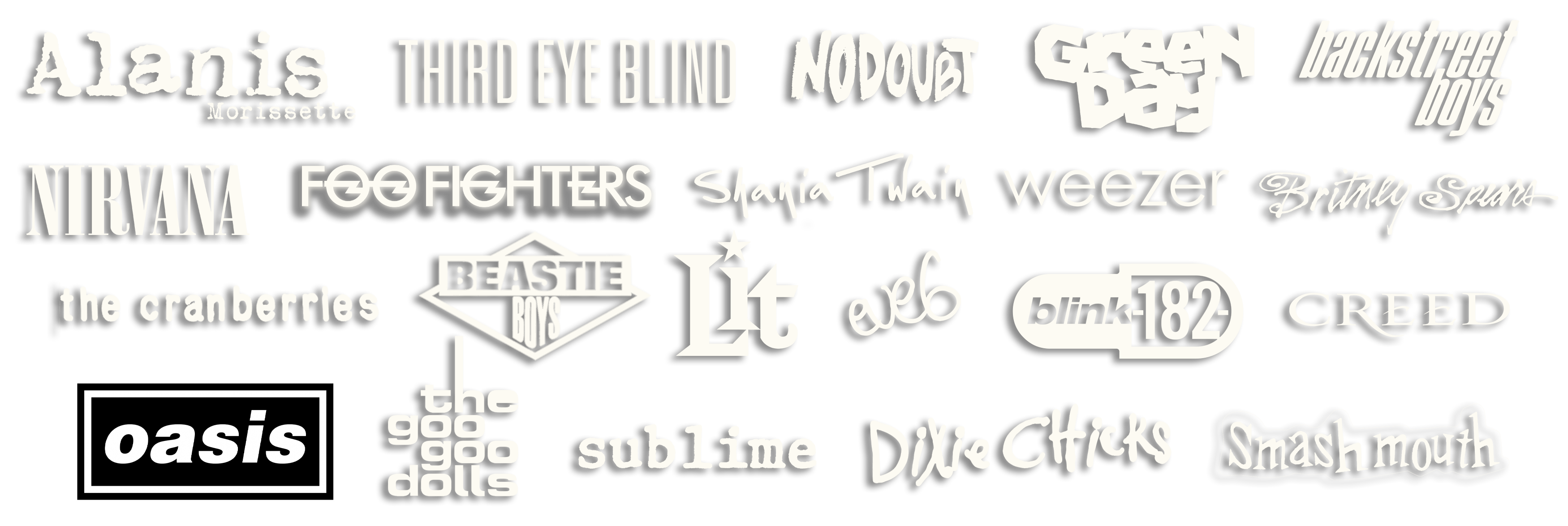 Gin Blossoms, Smash Mouth, The Killers, Sublime, Alanis Morissette, Foo Fighters, Franz Ferdinand, Goo Goo Dolls, The Cranberries, Violent Femmes, Third Eye Blind, No Doubt, Oasis, Eve 6 and more!